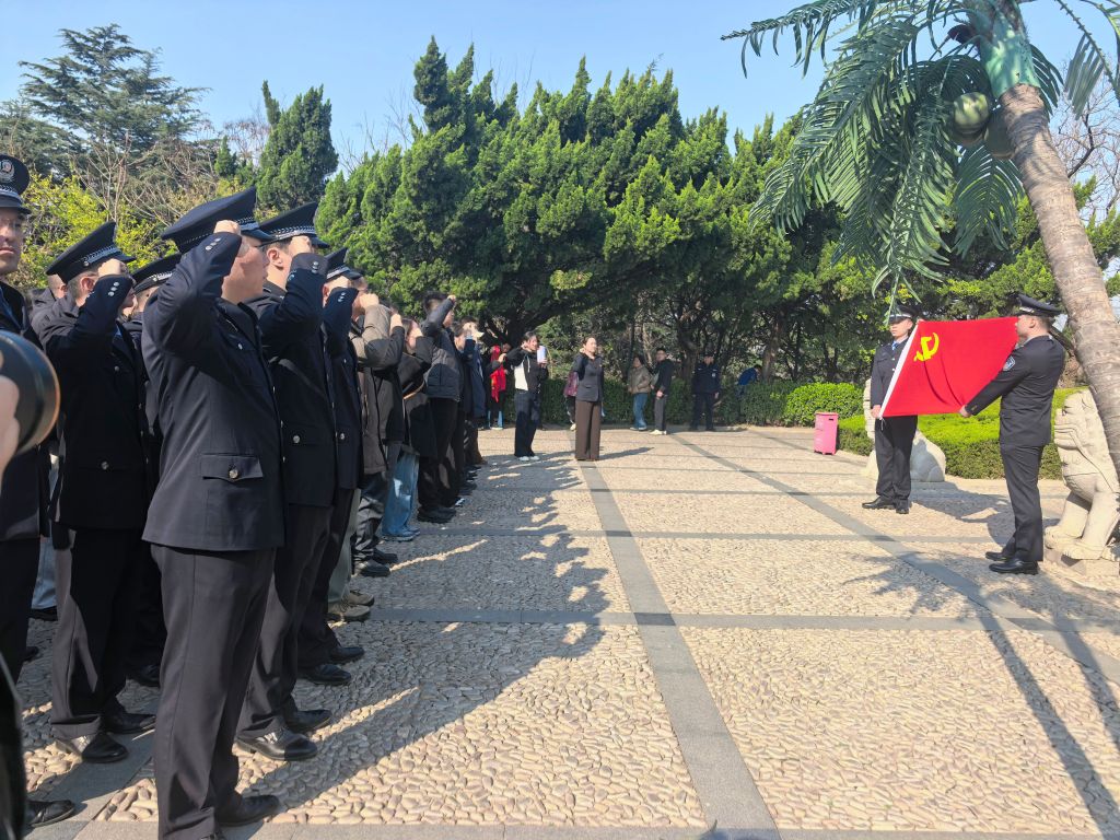 发言结束后,全场肃立默哀,向革命先烈致以最崇高的敬意。随后,全体人员依次敬献鲜花,缓步绕行瞻仰纪念碑,深情追思英烈功绩。在鲜红的党旗下,党员同志们高举右拳,重温入党誓词,更加坚定了赓续红色血脉、践行初心使命的信念。