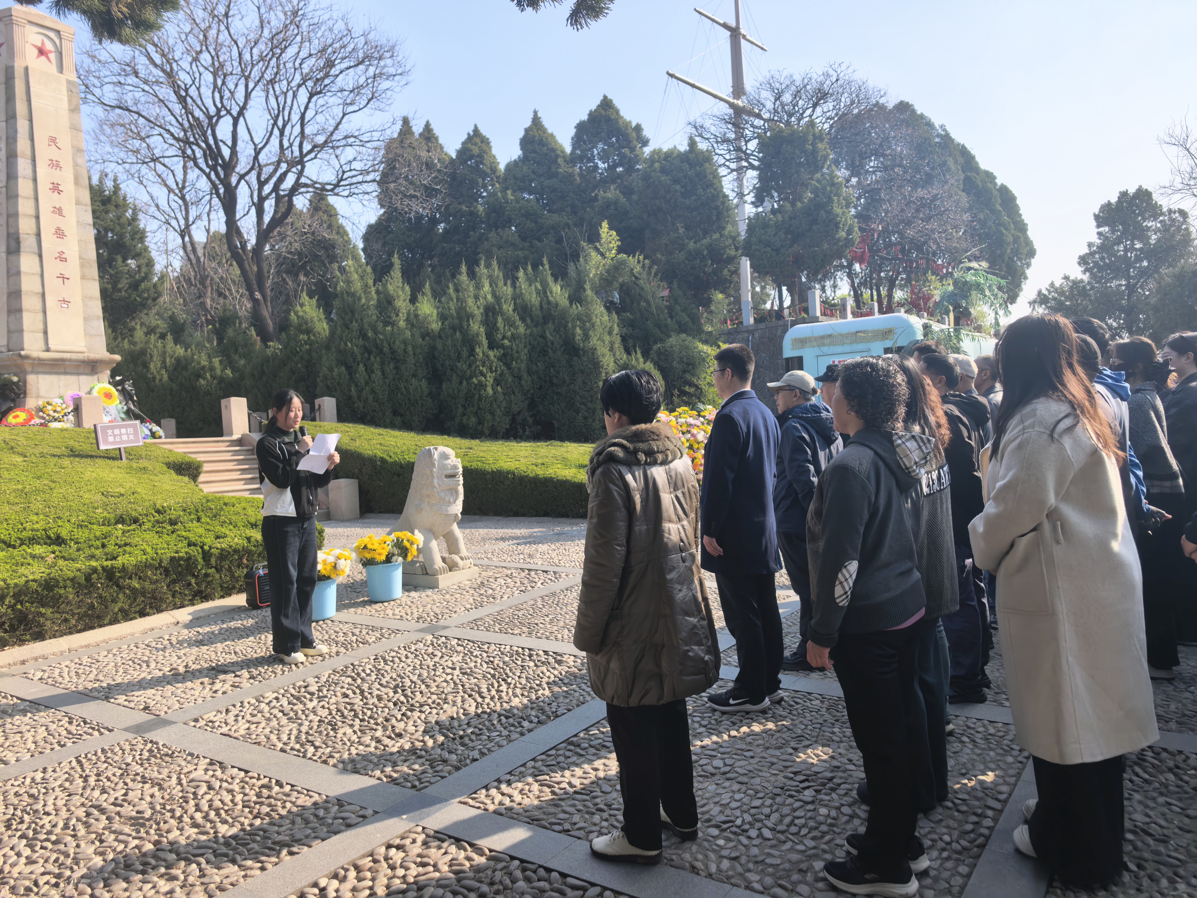 清明节前夕,人文学院与双报到社区及各报到单位赴烟台山烈士纪念碑开展“追思·奋进·前行”——清明祭英烈主题党日活动。