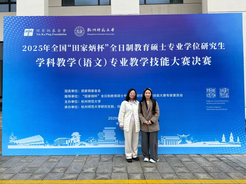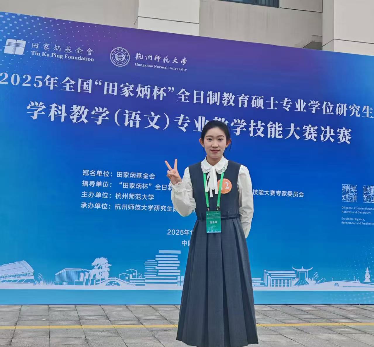 11月9日,2025年全国“田家炳杯”全日制教育硕士专业学位研究生学科教学(语文)专业教学技能大赛决赛在杭州师范大学落下帷幕。人文学院2024级学科教学(语文)专业研究生邹毓鹏同学凭借扎实的专业素养、出色的教学设计与稳定的现场发挥,荣获国家级二等奖的佳绩。