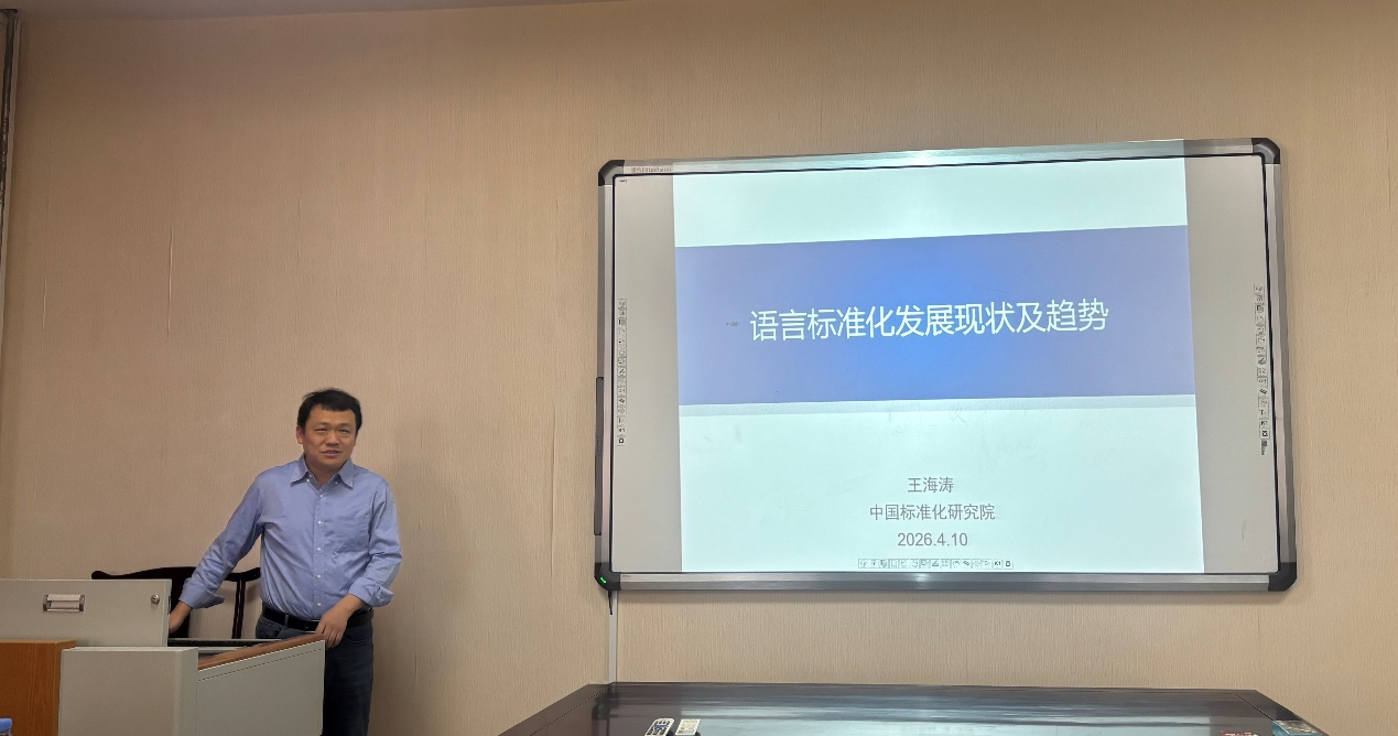 4月10日下午,人文学院、国家语言文字科研机构汉语辞书研究中心邀请全国语言与术语标准化技术委员会(SAC/TC62)秘书长王海涛做客“鲁东大讲堂”,开展题为“语言标准化发展现状及趋势”的学术讲座,讲座由国家语言文字科研机构汉语辞书研究中心主任亢世勇教授主持,40余名师生到场聆听。