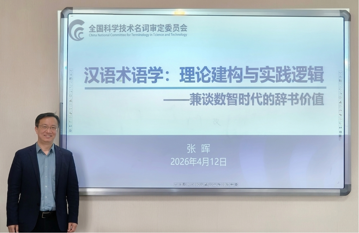在讲座中,围绕汉语术语的形成与发展,张晖研究员以钱学森关于“virtual reality”译名“灵境”的思考为引子,生动阐释了科技译名中的“中国味”问题,强调术语定名不仅是语言转换问题,更关乎文化传统、知识传播与科技话语体系建构。在回顾汉语术语发展历程时,张晖研究员系统梳理了汉语术语从古代本土生成到近代西学东渐背景下的翻译创制,再到现代规范化建设的发展脉络。他结合阿拉伯数字引入之争、译音专用字探索、化学元素命名实践等案例,揭示了汉语术语在古今演进、中外互鉴中所形成的独特道路。围绕术语学的汉语纲领,张晖研究员进一步提出,现代术语学不能仅停留在印欧语言框架下理解术语,而应立足汉语自身特点,推动古今贯通、融会中外、体用结合。他认为,汉语术语具有“科技属性+语文属性”的二维特征,术语研究既要关注知识本体、术语表达,也要重视知识传播与术语应用,从而构建面向中国实际、兼具理论深度与实践价值的汉语术语学体系。谈及数智时代的语言与知识变革,张晖研究员结合人工智能、大语言模型、大数据、数字孪生等前沿议题,分析了“数据—智慧—赋能”的时代逻辑。他指出,在数智背景下,术语和辞书不仅是知识整理与文化传承的重要载体,也是实现人与人、人与机器、机器与机器高效沟通的可靠知识媒介。术语规范化和辞书价值重构,正在成为推动知识治理、数据互联和智能应用的重要基础工作。