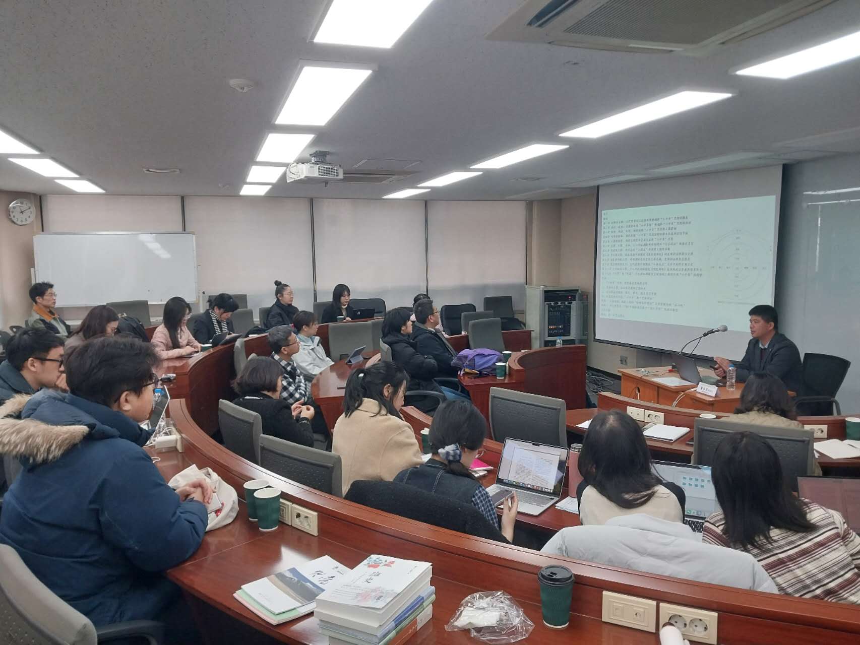 在高丽大学,团队与国际韩国语言文化研究所联合举行“中国对韩国学研究的新旨趣”工作坊,黄修志、王飞燕受邀分别发表“朝鲜王朝的政治文化与历史书写”“中国对韩国学研究的新动向”主题报告,吸引了诸多高丽大学师生前来交流对话。团队又赴该校亚洲问题研究院访问调研,与该院院长、原韩国历史学会会长李镇汉教授等师生举行东亚研究座谈会,并与该院达成了未来合作意向。