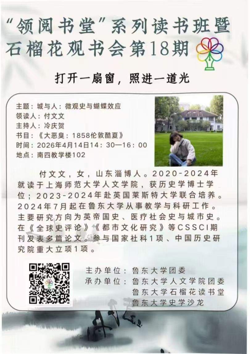 “领阅书堂”系列读书班暨石榴花观书会第18期【2026年4月14日14:30—16:00】地点:南四102教室