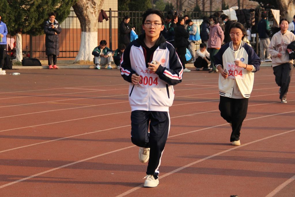 本次越野赛赛道串联起校园多处景致,既有平坦开阔的主干道,也有考验耐力的曲折路段。赛程前半段,选手们步伐矫健、节奏统一,整齐的脚步声在赛道上交织成激昂的旋律;随着体力逐渐消耗,后半程的较量俨然成为体能与意志的双重考验。同学们咬紧牙关、奋力冲刺,一个个坚定前行的身影,成为冬日校园里一道亮丽的风景线