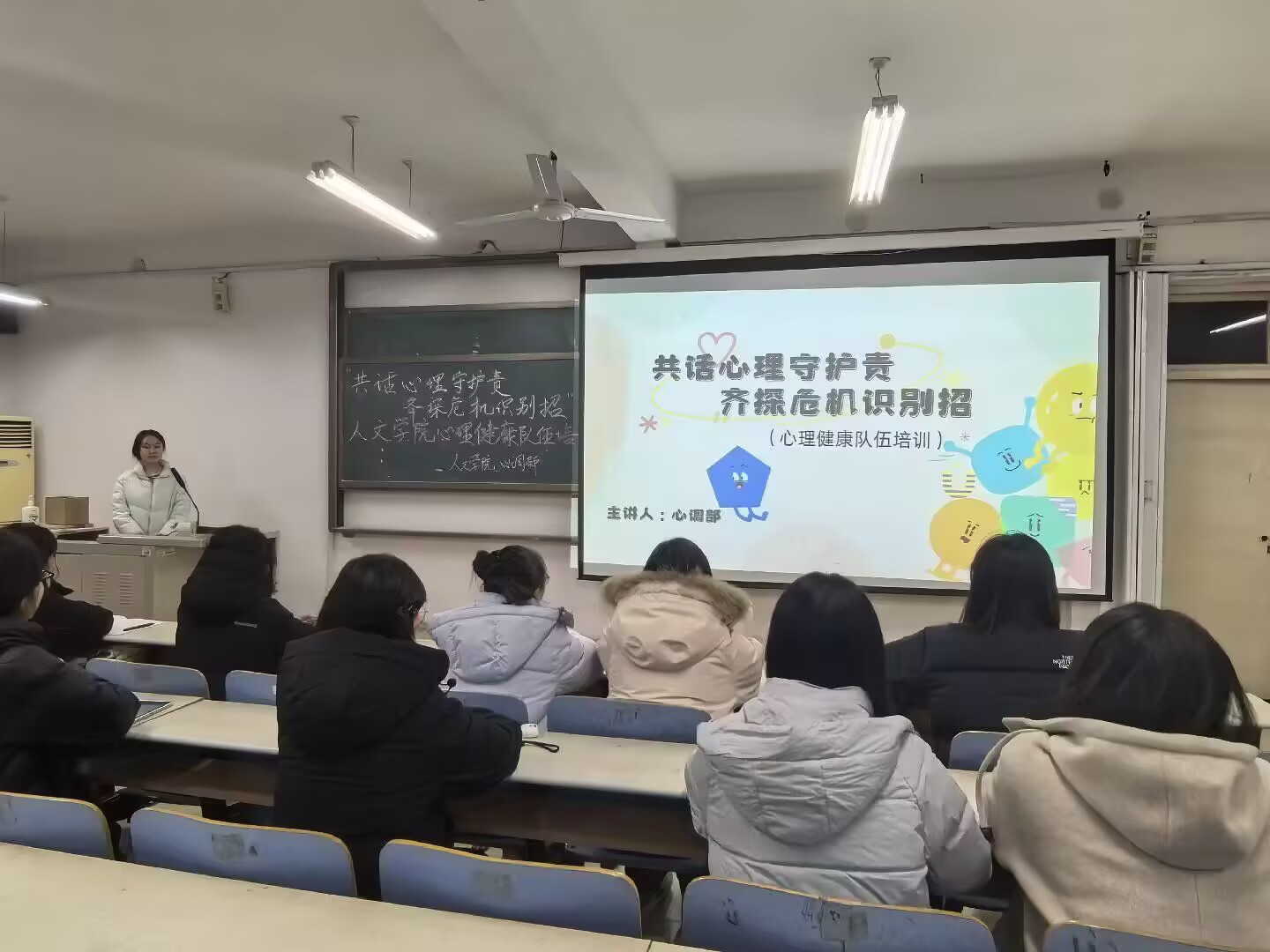 为呵护学生心理健康,培育积极乐观的心态,护航青年学子健康成长,进一步强化学院心理健康工作队伍建设,提升学生骨干识别与应对心理问题的能力,人文学院于12月9日开展“共话心理守护责,齐探危机识别招”专题培训,辅导员宫艺桐老师主持。