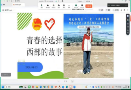 4月13日晚,人文学院举办西部计划线上宣讲会,邀请2020级历史学专业优秀毕业生、西部计划志愿者慕晓丹担任主讲,分享她在新疆服务与支教的成长故事。